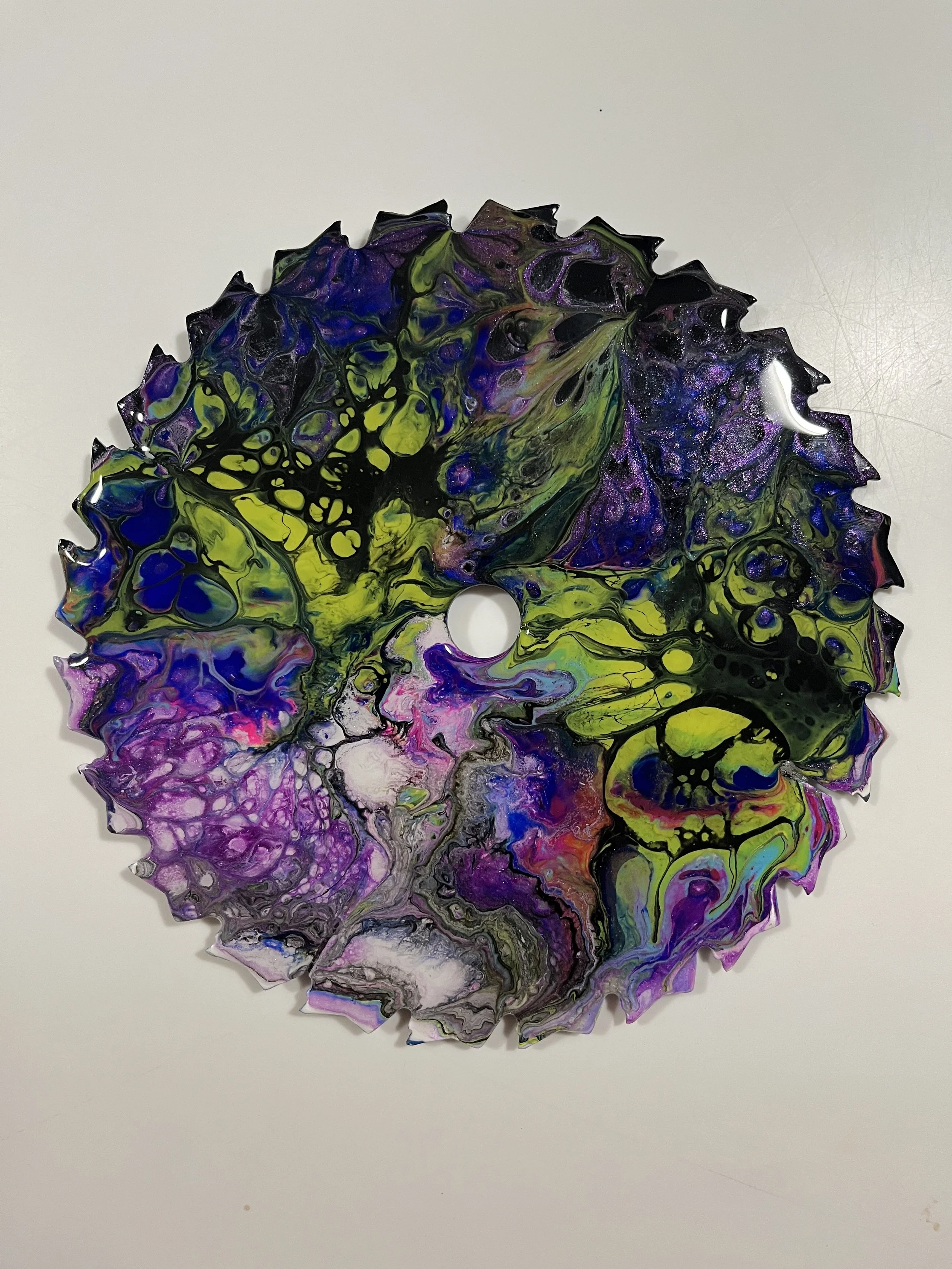 Shop › Custom Sawblade Image 1 of 5 Image 2 of 5 Image 3 of 5 Image 4 of 5 Image 5 of 5 Custom Sawblade $300.00 Size: 7" 8" Material: Paint Pour Image Quantity: Add To Cart Added!